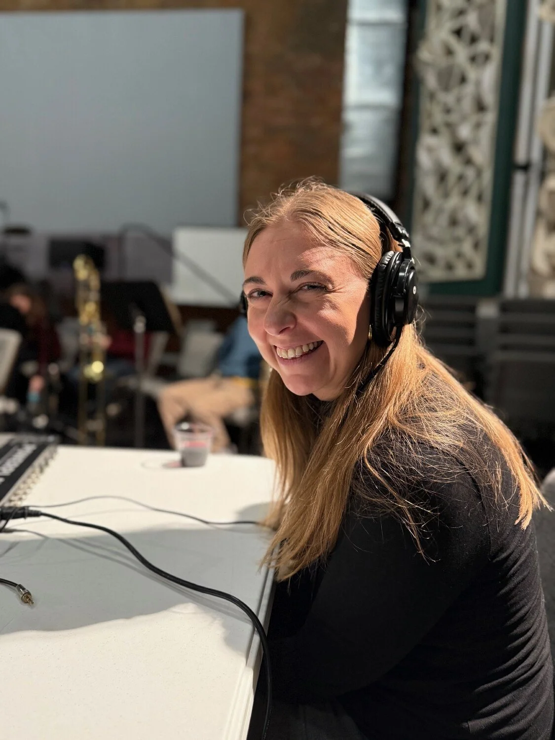 Attendees had the rare opportunity to step into the shoes of the Kaboom Studio Orchestra musicians, wearing headphones to experience the same audio feed the orchestra hears during recording. This included a click track to keep perfect timing and a guide vocal demo, which will later be re-recorded and mixed with the live orchestral performance captured that evening.